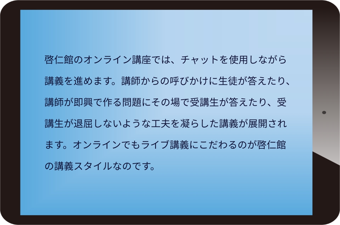 1. 啓仁館HP「お問合せ」の「お問合せ先」→「オンライン英語」を選択し、必要事項を入力してご送信ください。