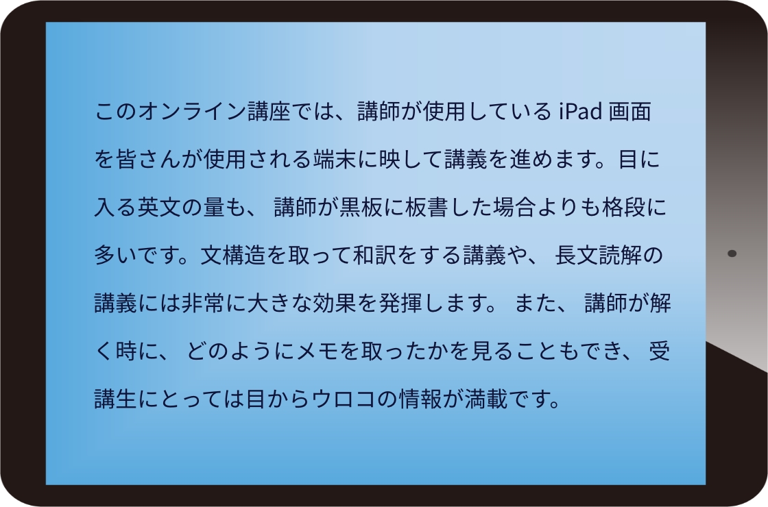 アップデート前までは前年度分を視聴していただくことになります。前年度分と当年度分の違いは大きくありませんが、時代にそぐわない教材を入れ替えたり、生徒さんのレベルに応じて教材の難易度を微調整したりすることはあります。
